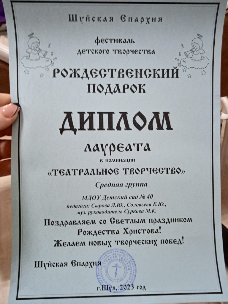 С первых минут наш зал наполнился особой атмосферой. С приветственным словом к присутствующим обратился протоирей, секретарь епархиального управления Василий Добычин,который совместно с начальником отдела образования Администрации городского округа Шуя Иваном Николаевичем Жоховым вручили заслуженные награды участникам фестиваля.