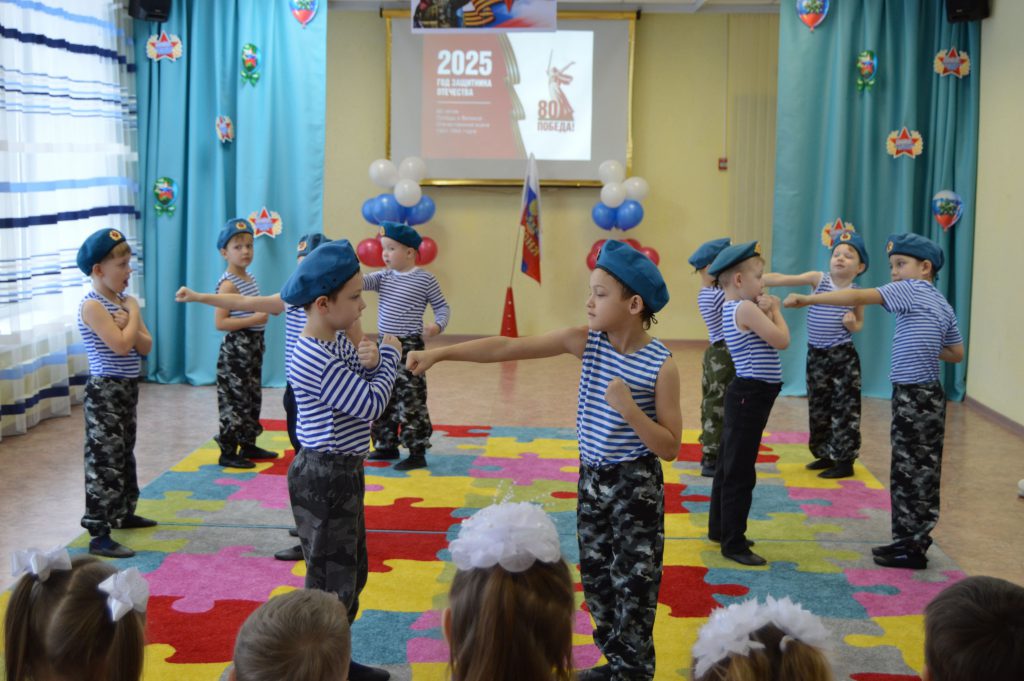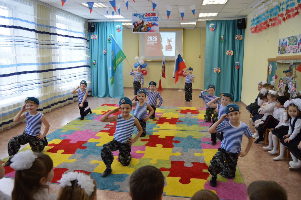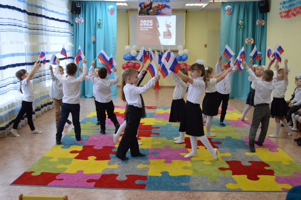 Сегодня в нашем детском саду прошло торжественное открытие «Года защитника Отечества» и празднование 80-летия Великой Победы. Это был настоящий праздник для воспитанников! Ребята средней, старшей и логопедических групп отправились в удивительное путешествие по страницам истории нашего великого государства. От древних времен, когда русские богатыри защищали родную землю, до современных героев, стоящих на страже мира и спокойствия. На мероприятии звучали трогательные стихи о Родине и подвигах предков, которые ребята читали с особым чувством и трепетом, а патриотические песни и танцы наполнили зал теплом и единством. Это был яркий и важный день для всех нас!