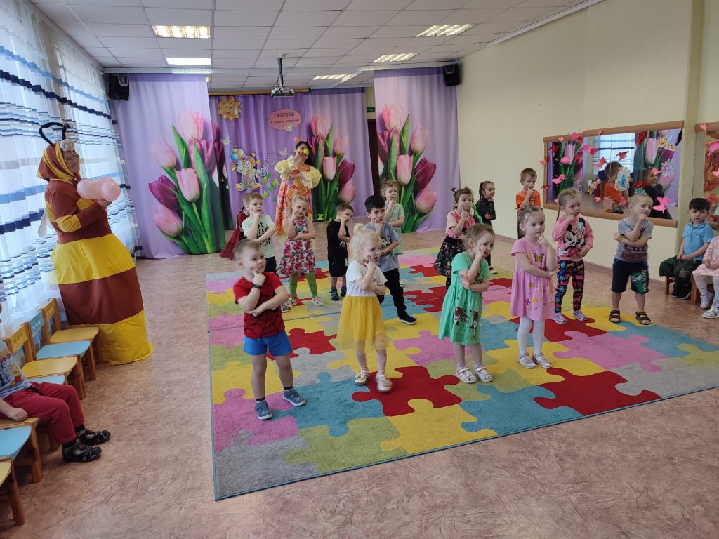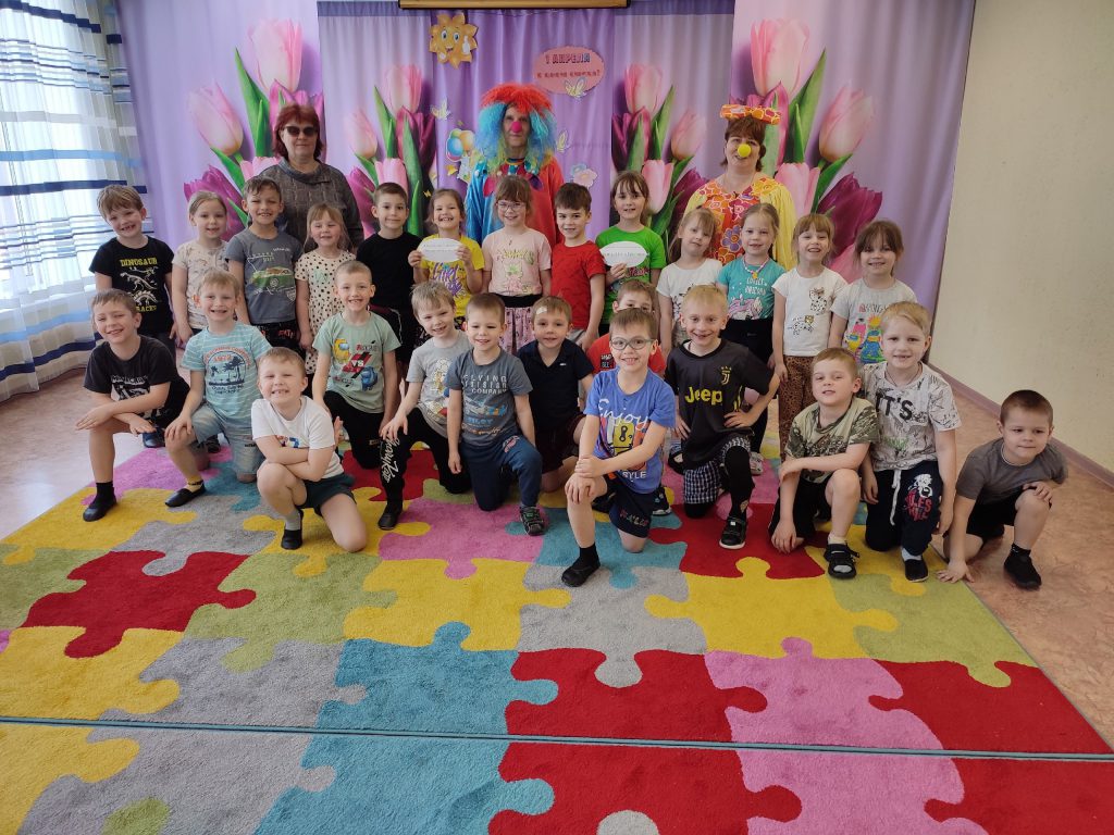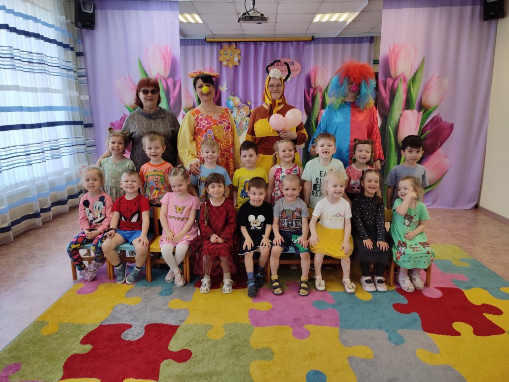 Сегодня ребята нашего детского сада приняли участие в настоящем празднике смеха и веселья! К ним в гости пришли замечательные клоуны — озорная Малышка, торопливый Торопыжка, хитрая Врушка, разговорчивая Говорушка и трудолюбивая Пчёлка!