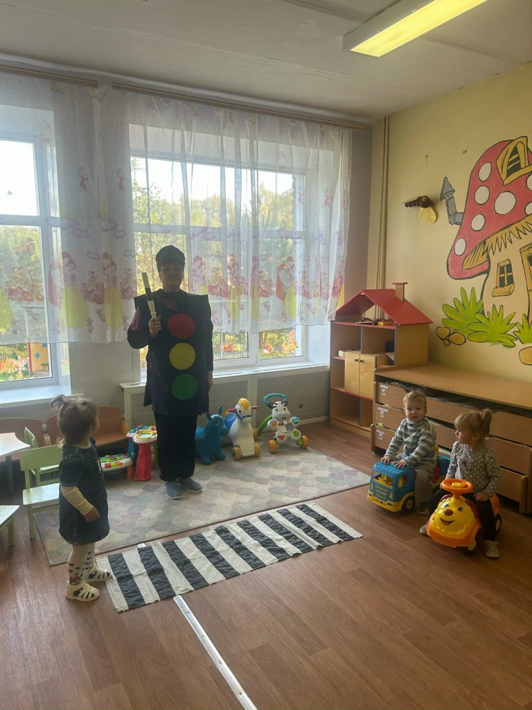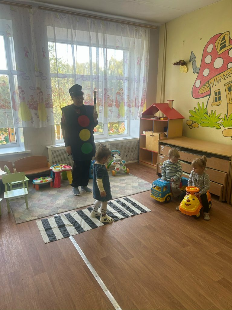 🚦 Так в первой младшей группе малыши поучаствовали в мероприятии » Веселый светофорчик», они с большим удовольствием катались на машинках по пешеходному переходу и повторяли названия цветов у светофорчика.