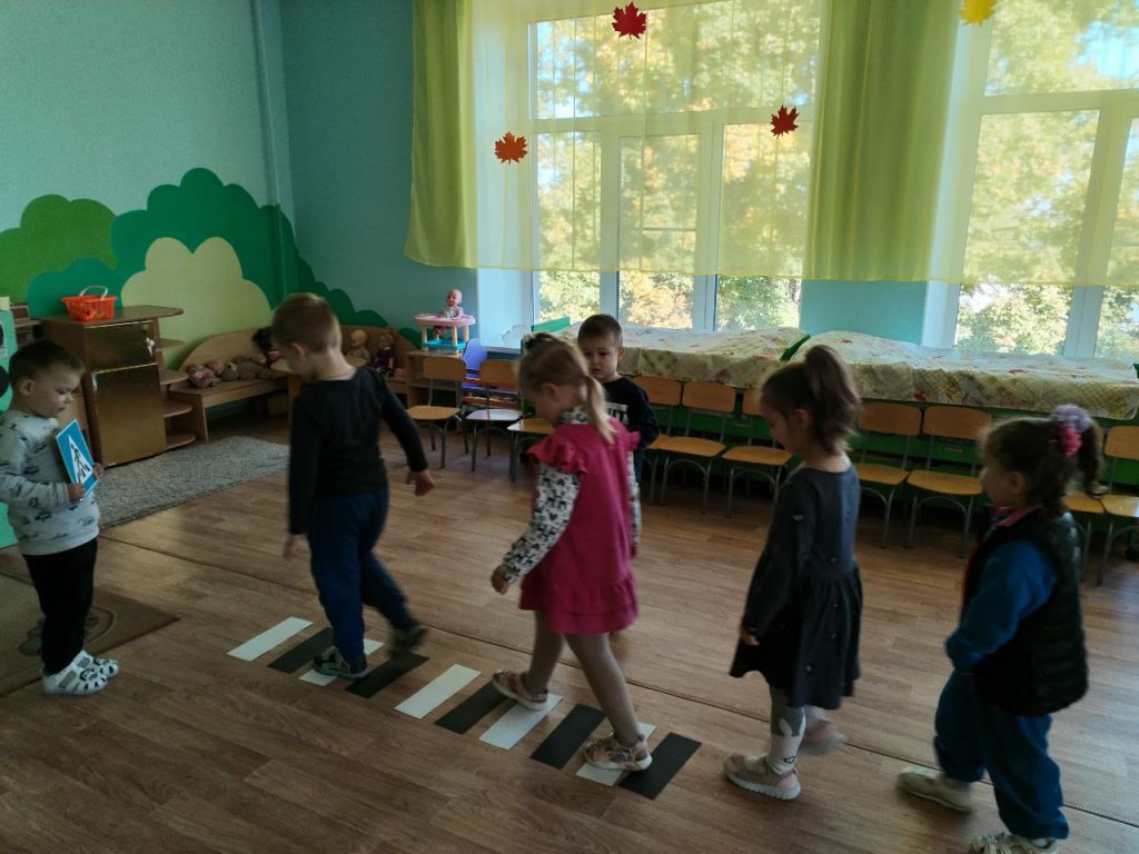 🚦В средней группе в ходе мероприятия ребята вспомнили правила поведения на дороге, рассмотрели дорожные знаки, отгадали загадки, повторили значение сигналов светофора и поиграли в игру «Сигналы светофора». Собрали пешеходный переход и инсценировали ситуацию на дороге с правильным переходом дороги.