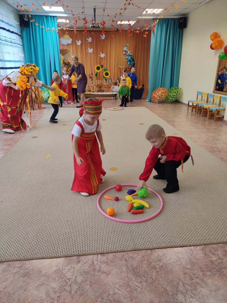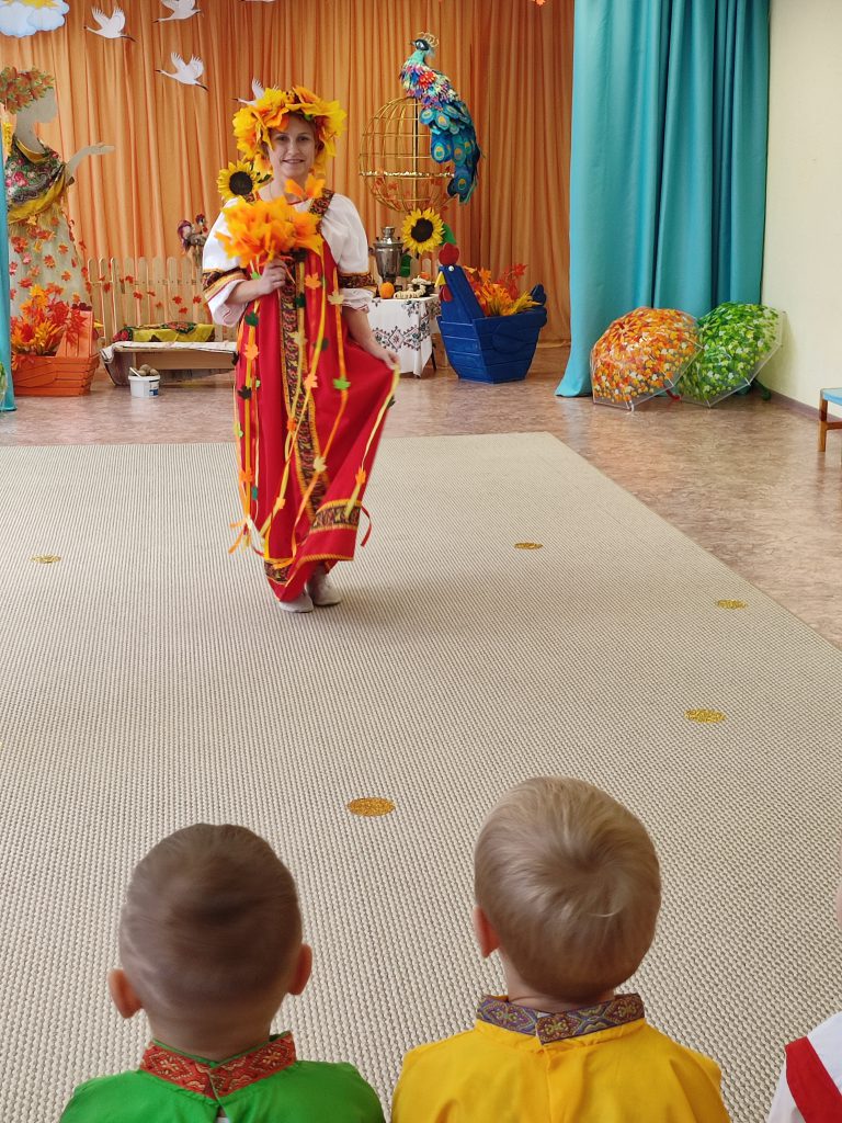 🍂 Затем к ним в гости пожаловала сама красавица Осень, они вместе весело играли и танцевали. В конце праздника Осень подарила ребятам осеннее угощение.